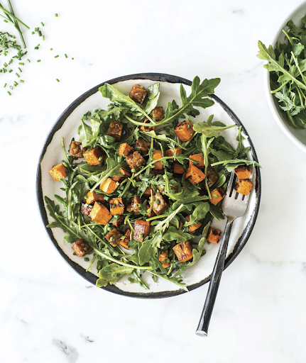 Power Plates Cookbook By Gena Hamshaw A Recipe From The Book Healthyhappylife Com Salad With Sweet Potato Tempeh Delicious Vegan Recipes